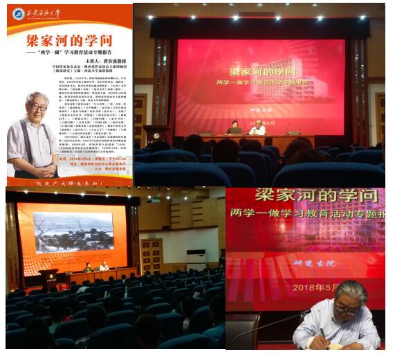 ——舉辦報告。5月4日下午,研究生院黨委邀請省作協(xié)主席團(tuán)顧問曹谷溪先生在雁塔校區(qū)為研究生院師生作了題為《梁家河的學(xué)問》的專題報告。研究生院黨委領(lǐng)導(dǎo)、全體學(xué)工干部和研究生代表300余人聆聽了報告。報告會上,曹老通過回顧習(xí)近平總書記在陜北黃土高原、在梁家河大隊創(chuàng)辦沼氣的知青歲月,闡述了習(xí)近平總書記青年時代矢志不渝的理想追求、愛國為民的家國情懷、勤奮好學(xué)的進(jìn)取精神、求真務(wù)實的良好作風(fēng)和吃苦耐勞的優(yōu)秀品質(zhì)。本次報告會旨在讓研究生牢記習(xí)近平總書記在北京大學(xué)師生座談會上愛國、勵志、求真、力行的諄諄囑托,反響熱烈。