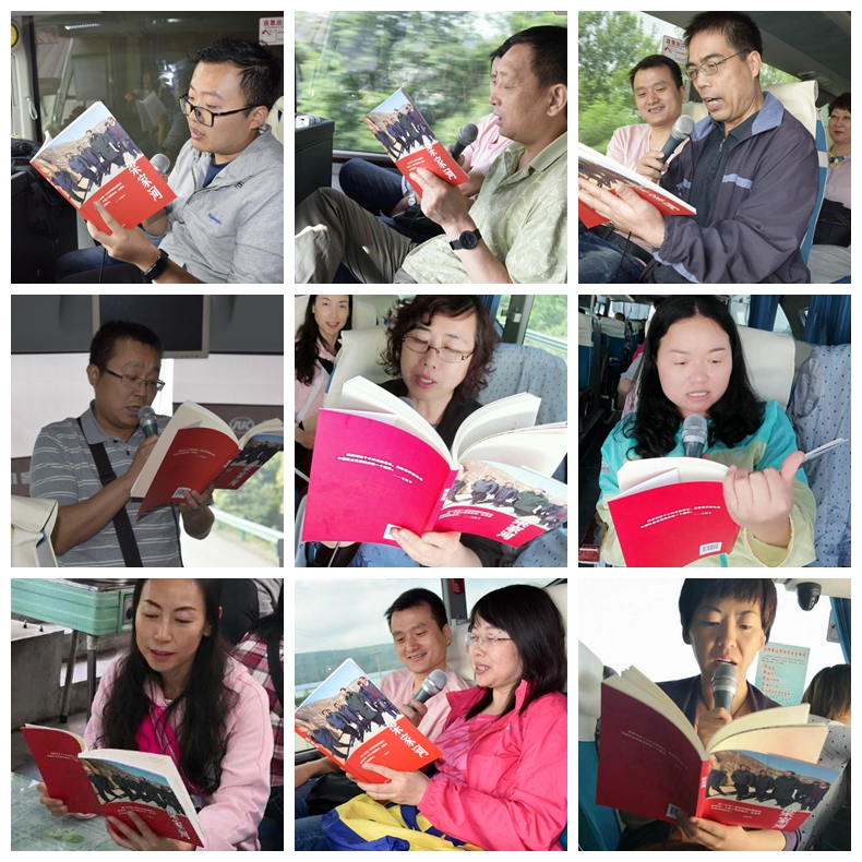 在大巴車上,大家接力誦讀《梁家河》。伴著滾滾向前的車輪,誦讀者飽含深情,聆聽者全神貫注,大家都沉浸在《梁家河》的意境中,傾聽著,思考著,被習(xí)近平在梁家河艱苦環(huán)境下實(shí)干、奮進(jìn)的精神觸動(dòng);深刻感受青年習(xí)近平從梁家河的老白姓最需要、最迫切的一樁樁實(shí)事做起,為當(dāng)?shù)匕傩罩\幸福、謀發(fā)展,身體力行地詮釋了中國(guó)共產(chǎn)黨人的初心和使命。