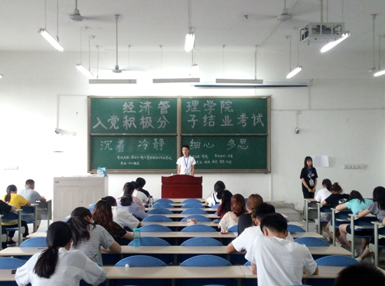 6月10日晚,經(jīng)濟(jì)管理學(xué)院第四十一期入黨積極分子培訓(xùn)班結(jié)業(yè)考試在鄠邑校區(qū)教學(xué)B區(qū)101、102、103教室順利進(jìn)行。