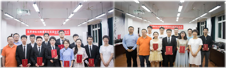 會(huì)議對(duì)星原詩(shī)社、翰墨書(shū)社的成立表示熱烈祝賀,希望該兩大社團(tuán)今后多多舉辦有益活動(dòng),為研究生詩(shī)詞書(shū)畫(huà)愛(ài)好者搭建廣泛學(xué)習(xí)、交流和展示的平臺(tái),為進(jìn)一步推進(jìn)西安石油大學(xué)書(shū)香校園建設(shè)、營(yíng)造良好校園文化氛圍、弘揚(yáng)中國(guó)傳統(tǒng)文化做出更多積極貢獻(xiàn)。研究生院團(tuán)委書(shū)記高黎為兩位社長(zhǎng)頒發(fā)聘書(shū),研究生院2017級(jí)輔導(dǎo)員、研究生會(huì)指導(dǎo)老師周鈺桐,思想教育與管理辦公室老師倪永良為兩大社團(tuán)授旗。