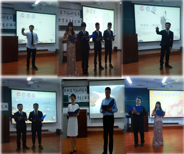 在詩(shī)歌朗誦環(huán)節(jié),在輔導(dǎo)員高黎、周鈺桐的帶領(lǐng)下,來(lái)自10余個(gè)學(xué)科(背景)的各年級(jí)的詩(shī)詞朗誦愛(ài)好者20余人,聲情并茂地朗誦了12首作品,感染了在場(chǎng)的每一位師生?!段沂侵袊?guó)人》和《我驕傲、我是中國(guó)人》讀出了中國(guó)人的民族自豪感;《一棵開(kāi)花的樹(shù)》《陋室銘》《面朝大?!肥惆l(fā)了對(duì)人生真諦的自然感悟、志向高潔的高雅境界和對(duì)人生向往的直抒胸懷;《將進(jìn)酒》《致橡樹(shù)》不僅有萬(wàn)丈豪情的激情澎湃,也表達(dá)了美好愛(ài)情的浪漫情懷。尤其是星原詩(shī)社社長(zhǎng)陳陽(yáng)兩篇原創(chuàng)詩(shī)作《答遠(yuǎn)方的詩(shī)》、《給青海湖》,更是描繪了石油人勇于拼搏、開(kāi)拓進(jìn)取、獻(xiàn)身祖國(guó)石油建設(shè)事業(yè)的美好畫(huà)卷。陳陽(yáng)社長(zhǎng)同時(shí)就創(chuàng)作背景、詩(shī)篇立意及靈感來(lái)源作了交流匯報(bào),聽(tīng)完令人精神鼓舞,心向往之,投身到祖國(guó)石油建設(shè)事業(yè)的“戀油之情”油然而生。