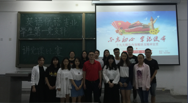 5月15日晚,英語(yǔ)俄語(yǔ)專業(yè)學(xué)生第一黨支部在B區(qū)103教室舉行講黨課比賽,賽事由支部書(shū)記蔣曙光老師主持,英語(yǔ)俄語(yǔ)專業(yè)學(xué)生第一黨支部全體學(xué)生黨員參加了本次活動(dòng)。