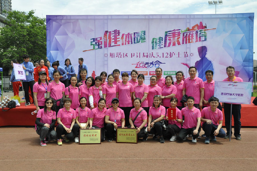 5月11日上午,為慶祝第107個(gè)國際護(hù)士節(jié),校醫(yī)院院職工在崔廣志院長的帶領(lǐng)下參加西安雁塔區(qū)衛(wèi)生與計(jì)劃生育局舉辦的慶祝“5.12”護(hù)士節(jié)運(yùn)動(dòng)會(huì)。