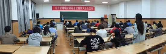 為全面推進(jìn)習(xí)近平新時(shí)代中國特色社會(huì)主義思想“三進(jìn)”工作,認(rèn)真貫徹落實(shí)全國高校思想政治工作座談會(huì)和教育部“思想政治理論課教師隊(duì)伍建設(shè)年”總要求,按照學(xué)校工作安排,2018年5月9日,經(jīng)管院組織進(jìn)行了“經(jīng)濟(jì)管理學(xué)院課程思政教師大練兵教學(xué)觀摩活動(dòng)”。特別邀請(qǐng)優(yōu)秀教師代表石冬蓮老師和董春詩老師進(jìn)行了精彩的教學(xué)示范。教學(xué)示范活動(dòng)由教學(xué)副院長(zhǎng)吳勛主持,院領(lǐng)導(dǎo)班子成員、學(xué)院部分教師、學(xué)生黨員代表及各辦公室人員參加了活動(dòng)。