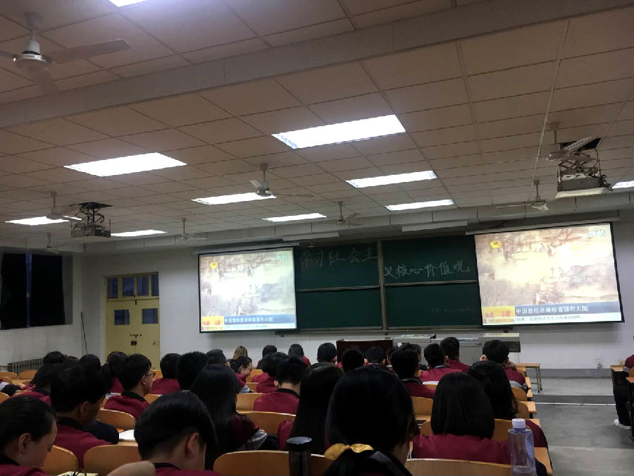 在設(shè)計(jì)1703史宗琦和物理1701李曉芳兩位同學(xué)的帶領(lǐng)下,中文1701班鄺麗華等三名同學(xué)進(jìn)行了精彩演講,帶領(lǐng)與會(huì)學(xué)生更深入的了解社會(huì)主義核心價(jià)值觀的內(nèi)涵。接下來(lái),在知識(shí)競(jìng)賽的環(huán)節(jié)上,同學(xué)們進(jìn)行分組分區(qū)、互相配合,通過(guò)“聽(tīng)歌傳花”的形式來(lái)選擇回答問(wèn)題的同學(xué),氣氛相當(dāng)活躍,極大的提高了在場(chǎng)同學(xué)的積極性、增強(qiáng)了活動(dòng)的互動(dòng)性,充分展示了當(dāng)代大學(xué)生的文化素養(yǎng)和競(jìng)爭(zhēng)意識(shí)。最后,活動(dòng)在以視頻的方式展示當(dāng)代大學(xué)生該如何踐行社會(huì)主義核心價(jià)值觀中拉上了帷幕。這次活動(dòng),使同學(xué)們充分認(rèn)識(shí)到中國(guó)夢(mèng)的實(shí)現(xiàn)有賴(lài)于我們青年一代,鼓勵(lì)全體團(tuán)員不忘初心,繼續(xù)前行。