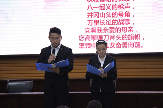 伴隨著詩朗誦《黨的贊歌》,本次班會拉開了序幕。