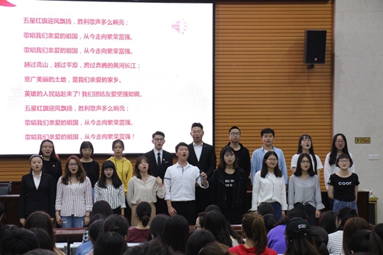 最后,伴隨著合唱《歌唱祖國》的嘹亮歌聲,本次班會圓滿結(jié)束。