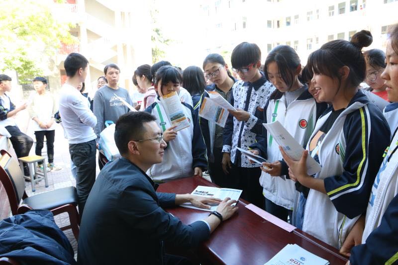 齊基和張振軍兩位老師結(jié)合生涯規(guī)劃課程知識體系與自身豐富的學生工作經(jīng)驗,精心準備,為高中生做了多場精彩紛呈的中學生生涯規(guī)劃與心理勵志報告,活動現(xiàn)場互動熱烈,報告會受到了中學生的熱烈追捧。同學們紛紛表示受益匪淺,對個人未來的生涯規(guī)劃和職業(yè)導向有了更清晰的認識和目標。在走訪中學的咨詢服務(wù)活動中,兩位老師為各地中學分發(fā)我校2018年招生宣傳材料,為同學們答疑解惑,解讀招生政策、專業(yè)特色、就業(yè)前景等關(guān)注度較高的問題,我校富有特色、內(nèi)容豐富的宣傳材料受到了中學師生的廣泛好評。