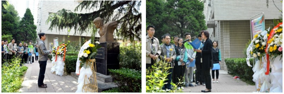 在“悼英雄,緬懷光輝事跡”環(huán)節(jié),在石油工程學(xué)院溫迪同學(xué)主持下,與會師生集體默哀,本科生代表葉楠帶領(lǐng)大家回顧了英雄事跡;石油工程學(xué)院、研究生院黨委書記馬勇、高榮芳,石油工程學(xué)院院長周德勝、黨委副書記張建高、唐春雨烈士生前班主任老師李琪、學(xué)生管理辦公室主任孫會珠,研究生輔導(dǎo)員周鈺桐,本科生輔導(dǎo)員朱戰(zhàn)威、張楠、劉曉陽、嚴(yán)維博、孫浩哲等,同本科生、研究生黨員代表,研究生會代表一起,依次在春雨烈士塑像前行三鞠躬禮并獻(xiàn)花,表達(dá)對烈士的無限哀思和敬意。時(shí)在鄠邑校區(qū)上課的石油工程教師、唐春雨烈士生前同學(xué)徐波,也轉(zhuǎn)達(dá)了班級同學(xué)對烈士的無限緬懷。