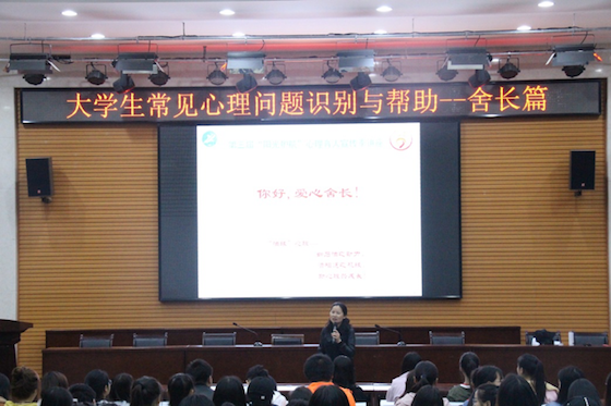 為落實(shí)我校第三屆“陽光護(hù)航”心理育人宣傳季活動(dòng)計(jì)劃,提升經(jīng)濟(jì)管理學(xué)院“陽光護(hù)航”心理育人月系列活動(dòng)水平,2018年4月12日晚,經(jīng)濟(jì)管理學(xué)院邀請我校學(xué)生心理成長指導(dǎo)中心主任肖瓊副教授在經(jīng)管人文樓118室舉辦《大學(xué)生心理問題識別與幫助——舍長篇》專題講座。經(jīng)管院各年級輔導(dǎo)員和2015、2016級宿舍長300余人參加此次活動(dòng)。
