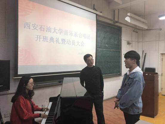 為加強(qiáng)音樂系學(xué)生各項基本技能,培養(yǎng)高質(zhì)量的“一專多能”型的群眾藝術(shù)工作者,經(jīng)過2個多月的籌備,成立音樂系合唱團(tuán)。3月26日晚,在雁塔校區(qū)二號教學(xué)樓1506音樂教室舉辦合唱團(tuán)開班暨動員大會。特聘,西安電子科技大學(xué)公共藝術(shù)教育中心主任、陜西省合唱學(xué)會副會長周偉教授為合唱團(tuán)指揮,音樂系主任程輝副教授、系黨總支副書記張偉出席本次大會。指導(dǎo)老師宋淼、鋼琴伴奏老師呂澄、學(xué)工辦全體老師及40名合唱團(tuán)成員參加本次大會。本次大會由張偉副書記主持。