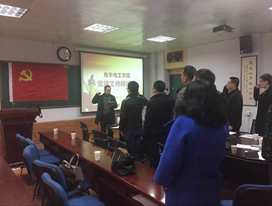 會上,學(xué)院環(huán)境教工支部書記申志兵和化工學(xué)生一支部書記屈敏佳分別進(jìn)行了支部書記工作述職。