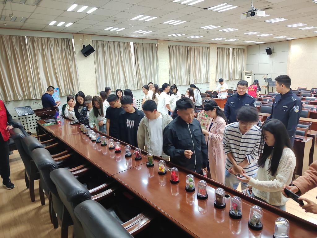 活動第二個環(huán)節(jié),由雁塔區(qū)文旅局向與會者播放了反詐宣傳片,提醒大家提高反詐意識。反詐宣傳片播放結(jié)束后,由西安市強制隔離戒毒所民警以情景劇形式向大家宣傳毒品的危害,同時展示了常見毒品的高度仿真模具,供與會者認(rèn)識和鑒別。