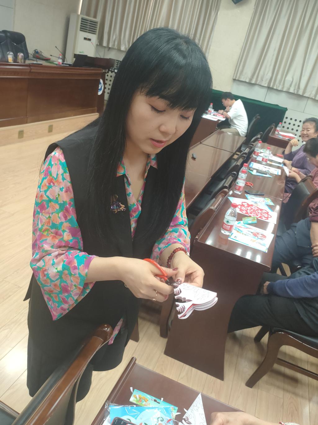 活動第三個環(huán)節(jié),由陜西省社區(qū)文化建設(shè)促進(jìn)會非遺文化專業(yè)委員會主任王艷同志,主講非遺剪紙藝術(shù)的歷史與傳承,并帶領(lǐng)大家親身體驗剪紙的樂趣。