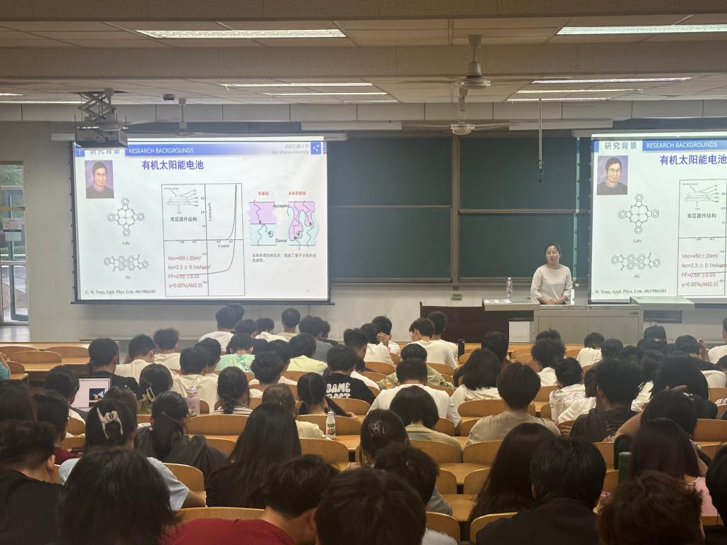 5月15日晚,學(xué)院新程大講堂第8講“光伏發(fā)電技術(shù)-有機(jī)太陽(yáng)能電池”在鄠邑校區(qū)A139室開(kāi)講。本次講座特邀學(xué)院新能源材料與器件系高歡歡擔(dān)任主講,學(xué)院2023級(jí)全體學(xué)生參加。講座中,高歡歡首先介紹了自己的學(xué)習(xí)和工作經(jīng)歷,接著向大一的同學(xué)們科普了當(dāng)前全球能源的嚴(yán)峻形勢(shì),強(qiáng)調(diào)新型綠色能源的開(kāi)發(fā)和利用的必要性和緊迫性,詳細(xì)解讀了“雙碳”戰(zhàn)略提出的背景和重大意義,并由此引入講座的主題“體相異質(zhì)結(jié)有機(jī)太陽(yáng)電池”。通過(guò)對(duì)從“器件效率”-“大面積柔性?!?span lang="EN-US">-“低成本光伏器件”-“綠色溶劑”-“穩(wěn)定性/壽命”不同發(fā)展階段,以及工作原理的詳細(xì)講解,讓同學(xué)們對(duì)自己所在的學(xué)科背景和知識(shí)有了更深層次的認(rèn)識(shí)。最后,高歡歡向同學(xué)們介紹了體相異質(zhì)結(jié)有機(jī)太陽(yáng)能電池的發(fā)展趨勢(shì),以及光伏器件和活性層的制備過(guò)程和方法,并結(jié)合學(xué)院的課程設(shè)置,帶領(lǐng)同學(xué)們進(jìn)一步了解所學(xué)專業(yè)的培養(yǎng)方案和培養(yǎng)目標(biāo),鼓勵(lì)同學(xué)們不斷提高自身專業(yè)能力,在專業(yè)領(lǐng)域持續(xù)深耕,積極投身到我國(guó)的新能源行業(yè)建設(shè)當(dāng)中去。