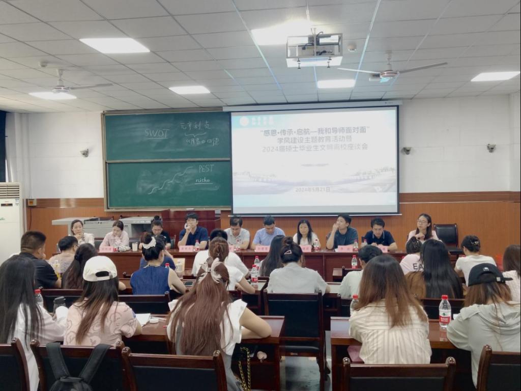 5月21日,經(jīng)濟(jì)管理學(xué)院在雁塔校區(qū)東階201教室召開(kāi)“感恩·傳承·啟航—我和導(dǎo)師面對(duì)面”學(xué)風(fēng)建設(shè)主題教育活動(dòng)暨2024屆碩士畢業(yè)生文明離校座談會(huì)。本次活動(dòng)圍繞“弘揚(yáng)科學(xué)家精神,恪守學(xué)術(shù)道德,培育優(yōu)良學(xué)風(fēng)”這一主題,深入學(xué)習(xí)貫徹習(xí)近平新時(shí)代中國(guó)特色社會(huì)主義思想,全面落實(shí)我校第三次黨代會(huì)精神,講好科學(xué)家故事,傳播優(yōu)良學(xué)風(fēng),引導(dǎo)研究生堅(jiān)守學(xué)術(shù)道德與科研誠(chéng)信,涵養(yǎng)優(yōu)良學(xué)風(fēng)。經(jīng)濟(jì)管理學(xué)院副院長(zhǎng)李春霄,管科系趙需要,企管系黃聿舟,經(jīng)濟(jì)系唐娟莉,會(huì)計(jì)系侯曉靖、黃莉、鄭蕊,研究生輔導(dǎo)員李政、阮添舜及各年級(jí)研究生代表30余人參加此次活動(dòng),活動(dòng)由研究生輔導(dǎo)員陸昕陽(yáng)主持。
