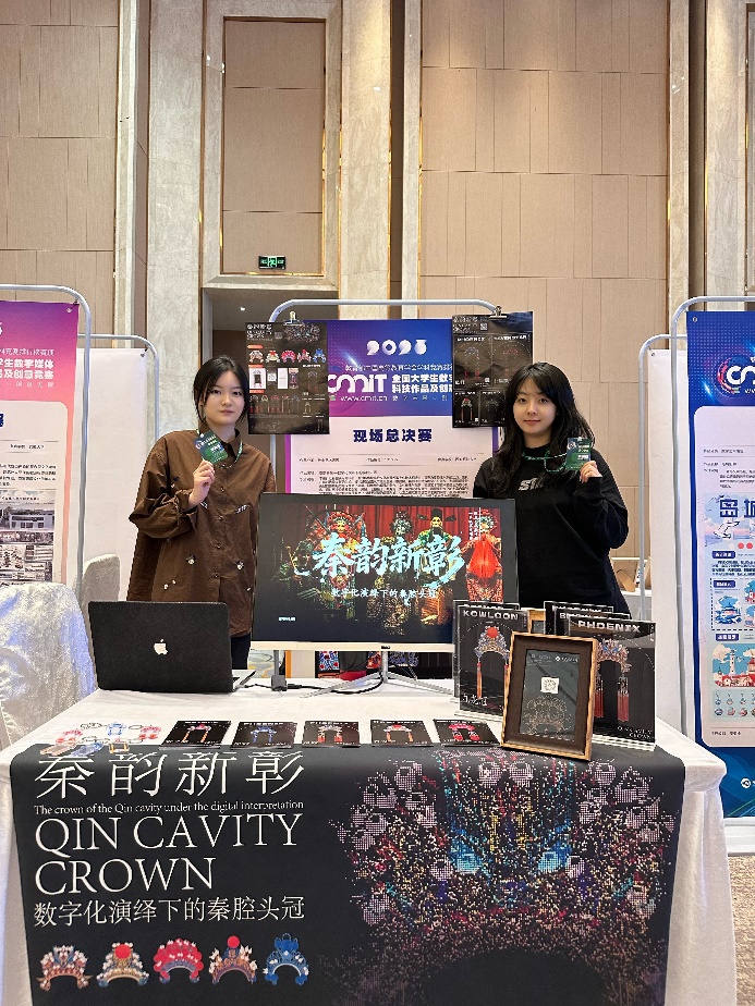 在高手云集的全國總決賽現(xiàn)場(chǎng),我校學(xué)子憑借將傳統(tǒng)文化與數(shù)字技術(shù)深度融合的創(chuàng)新設(shè)計(jì)脫穎而出。由何奇穎老師指導(dǎo),藝碩2402班史文婧、王翼鵬同學(xué)完成的作品《秦韻新彰——數(shù)字化演繹下的秦腔頭冠》,聚焦“數(shù)字藝術(shù)表現(xiàn)”,通過分層設(shè)計(jì)與動(dòng)態(tài)粒子效果,讓靜態(tài)的秦腔頭冠煥發(fā)出動(dòng)態(tài)的藝術(shù)生命力。由陳慶老師指導(dǎo),2022級(jí)視覺傳達(dá)設(shè)計(jì)專業(yè)穆子鈺、李義蔓、郭燕子同學(xué)完成的作品《延川丹彩——陜北匠藝丹青紋樣文創(chuàng)設(shè)計(jì)》,則投身于“民族文化創(chuàng)新表達(dá)”專項(xiàng)賽道,對(duì)陜北傳統(tǒng)紋樣進(jìn)行現(xiàn)代轉(zhuǎn)譯,展現(xiàn)了其深厚的文化內(nèi)涵與時(shí)代氣息。