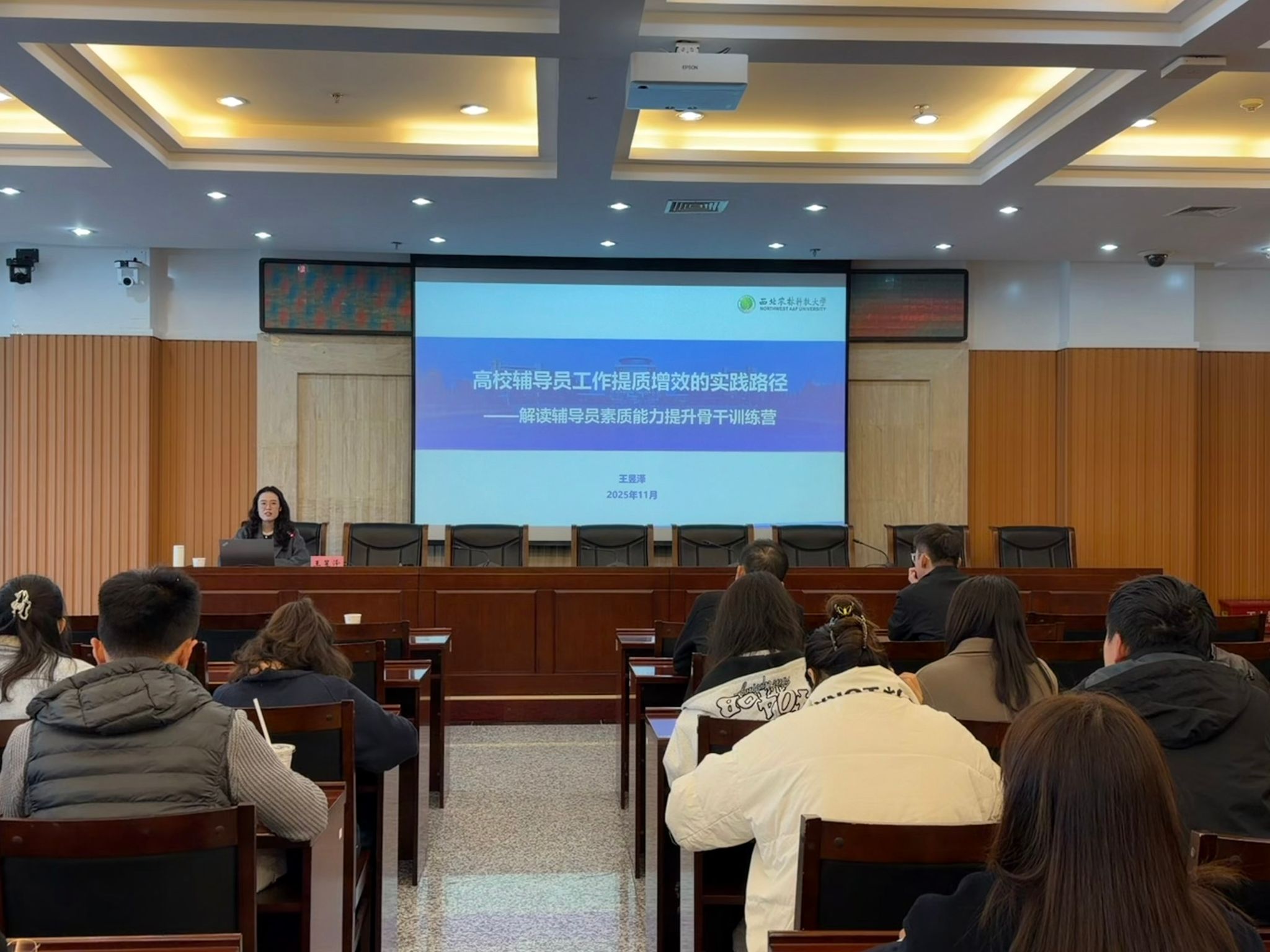 為進(jìn)一步提升我校學(xué)工干部專業(yè)素養(yǎng)與工作實(shí)效,落實(shí)立德樹人根本任務(wù),11 月 3 日上午,我校在鄠邑校區(qū)圖書館第一會(huì)議室舉辦 “鐵人式” 學(xué)工干部培訓(xùn)第七講。本次培訓(xùn)邀請西北農(nóng)林科技大學(xué)資源環(huán)境學(xué)院團(tuán)委書記兼學(xué)生工作秘書王昱澤,作《高校輔導(dǎo)員工作提質(zhì)增效的實(shí)踐路徑 —— 解讀輔導(dǎo)員素質(zhì)能力提升骨干訓(xùn)練營》專題報(bào)告。培訓(xùn)由學(xué)生工作部副部長畢軼慧主持,全體學(xué)工干部參加。