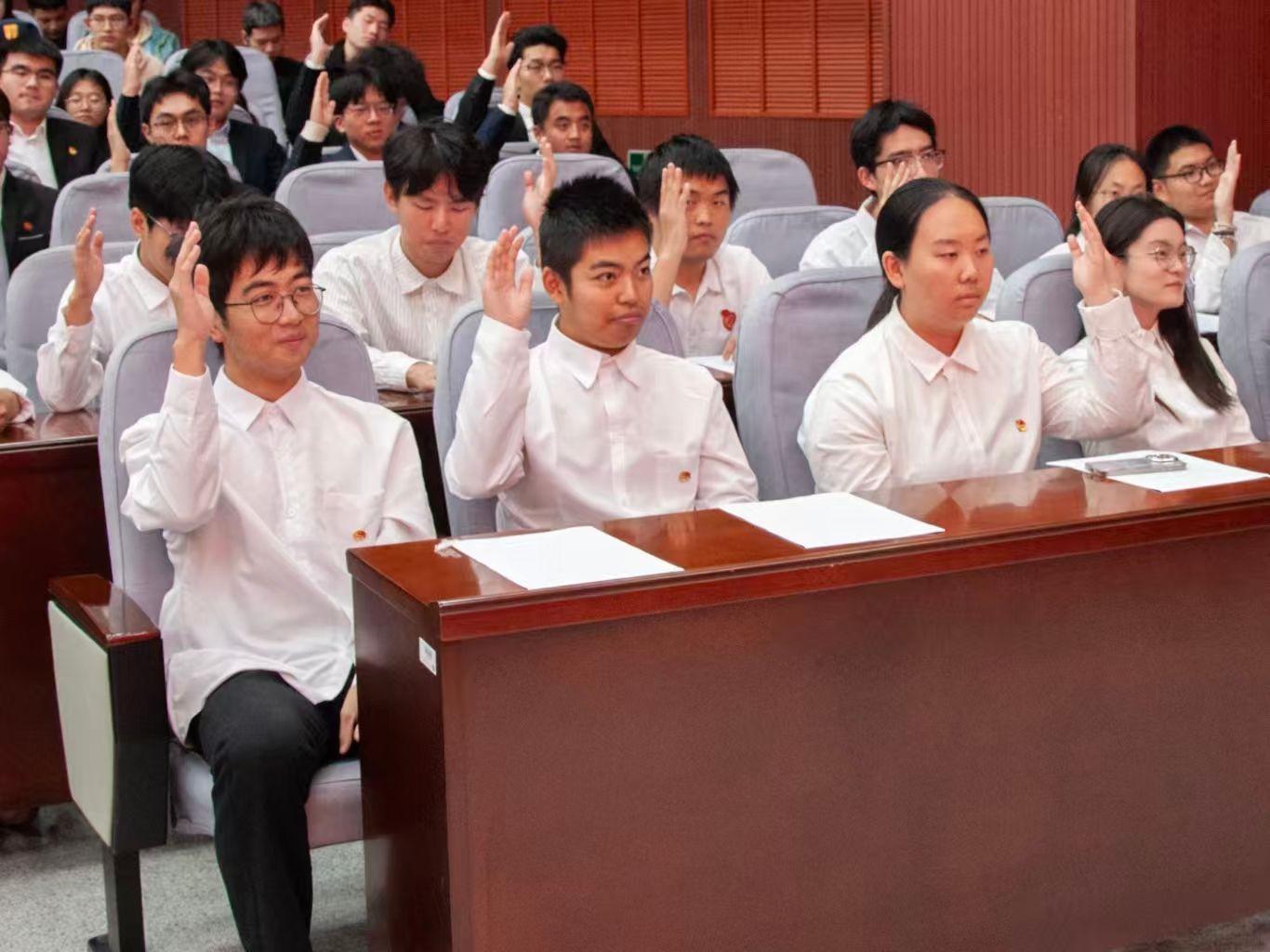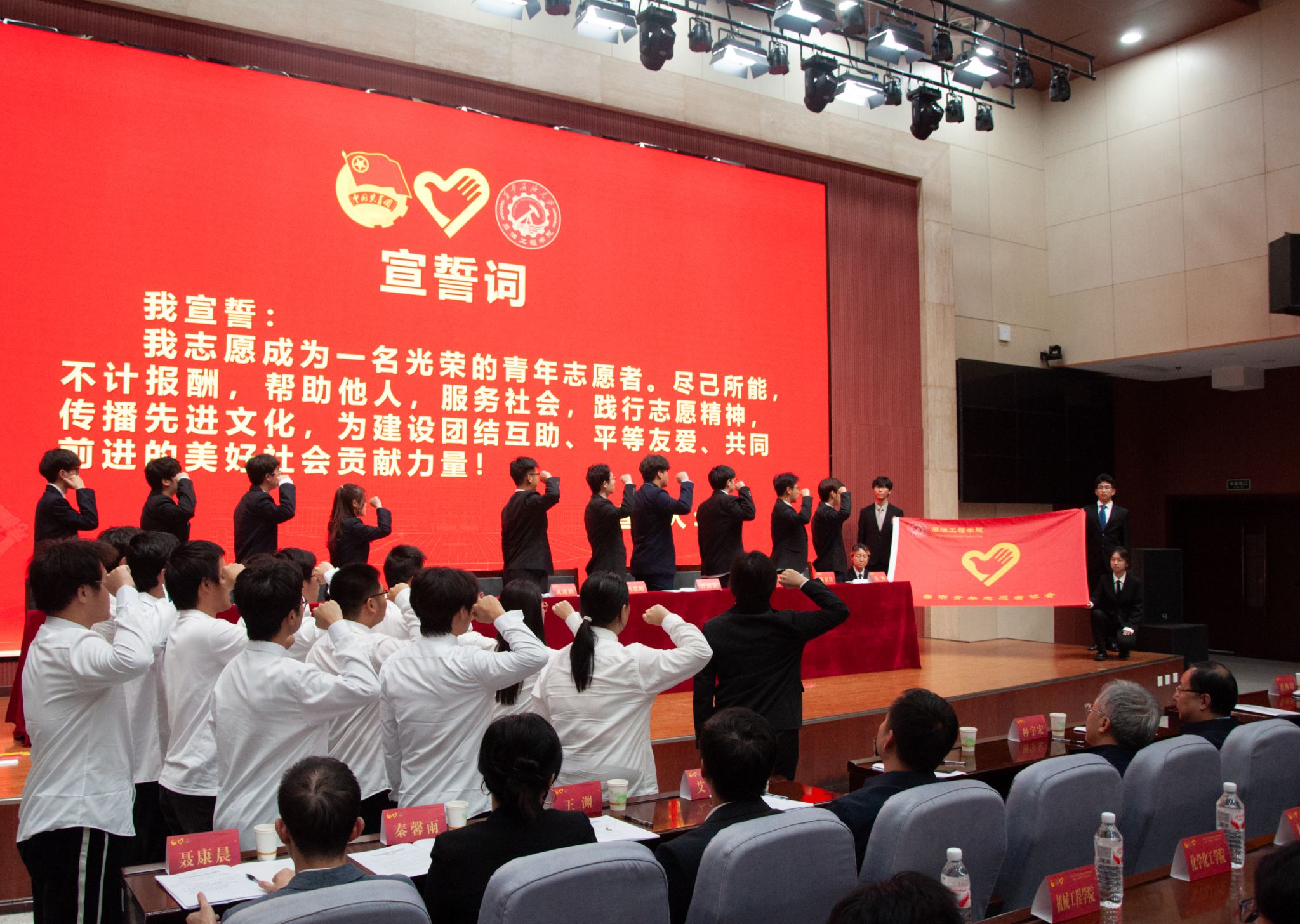大會最后,全體志愿者高舉右拳,進行集體宣誓,鏗鏘有力的誓言回蕩在報告廳內(nèi),標志著石油工程學院春雨青年志愿者協(xié)會正式開啟志愿征程。