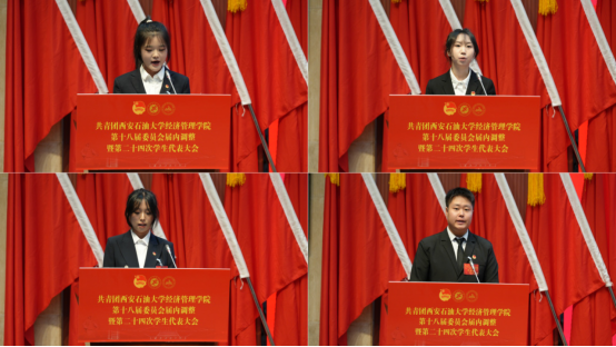 會上,學(xué)院團(tuán)委書記張碩宣讀了《共青團(tuán)西安石油大學(xué)經(jīng)濟(jì)管理學(xué)院委員會關(guān)于第十八屆委員會組織成員調(diào)整任命的通知》,新任團(tuán)委委員依次表態(tài)發(fā)言。團(tuán)學(xué)指導(dǎo)老師李政宣讀了《第二十四次學(xué)生代表大會選舉辦法》,與會代表民主投票選舉產(chǎn)生了新一屆學(xué)生委員會委員。大會聽取并審議通過了《大會籌備工作報(bào)告》《第二十三屆學(xué)生會年度工作報(bào)告》和《第二十四次學(xué)生代表大會提案工作報(bào)告》,新任團(tuán)委委員、當(dāng)選學(xué)生委員會委員面向團(tuán)旗進(jìn)行了莊嚴(yán)宣誓。