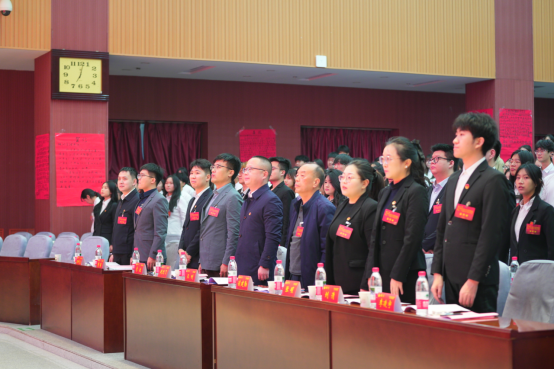 大會在莊嚴(yán)的國歌聲中拉開帷幕。