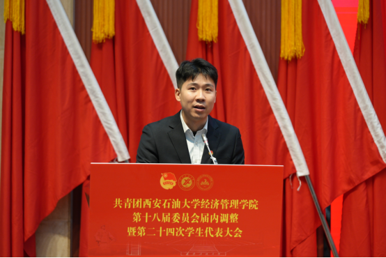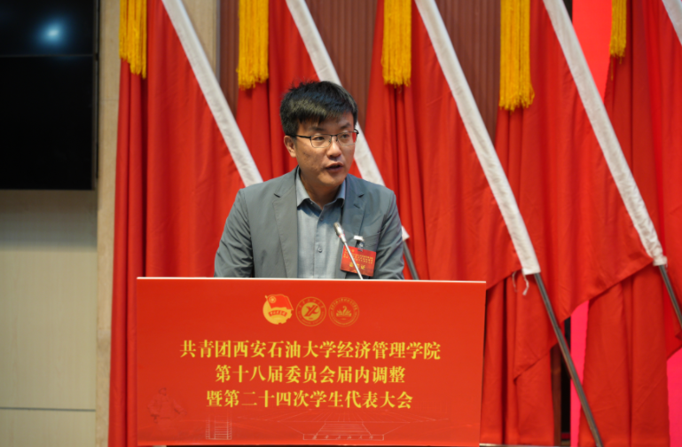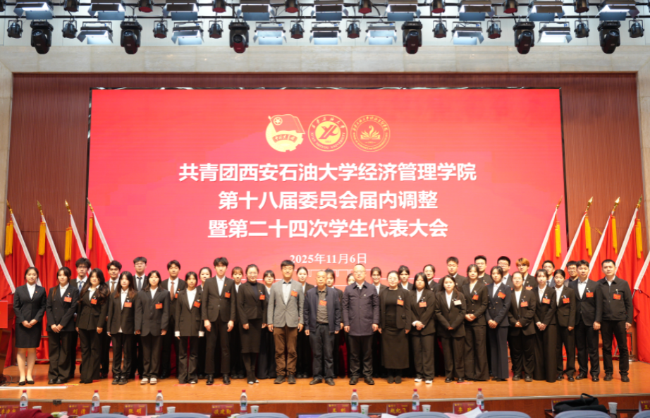2025年11月6日,共青團(tuán)西安石油大學(xué)經(jīng)濟(jì)管理學(xué)院第十八屆委員會屆內(nèi)調(diào)整暨第二十四次學(xué)生代表大會在鄠邑校區(qū)弘石學(xué)術(shù)報(bào)告廳順利召開。學(xué)院黨委書記談建勤、校團(tuán)委書記王剛、經(jīng)濟(jì)管理學(xué)院黨委副書記趙紀(jì)飛、經(jīng)濟(jì)管理學(xué)院團(tuán)委書記張碩、學(xué)院各年級團(tuán)總支書記、輔導(dǎo)員以及各兄弟院系學(xué)生會主席團(tuán)代表、學(xué)院學(xué)生代表200余人參加了此次會議。