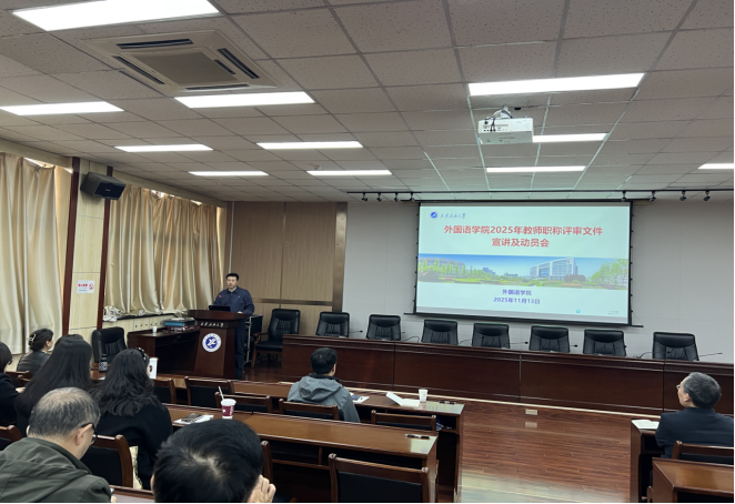 為切實幫助學(xué)院教師深入理解和準(zhǔn)確把握職稱評審文件精神,明確申報流程、評價標(biāo)準(zhǔn)及材料準(zhǔn)備要求,確保后續(xù)職稱申報工作有序高效推進,外國語學(xué)院于11月13日下午在雁塔校區(qū)會議中心第五會議室召開了學(xué)校“職稱評審辦法”宣講及申報動員會。學(xué)院領(lǐng)導(dǎo)和全體教職工參加了此次會議。