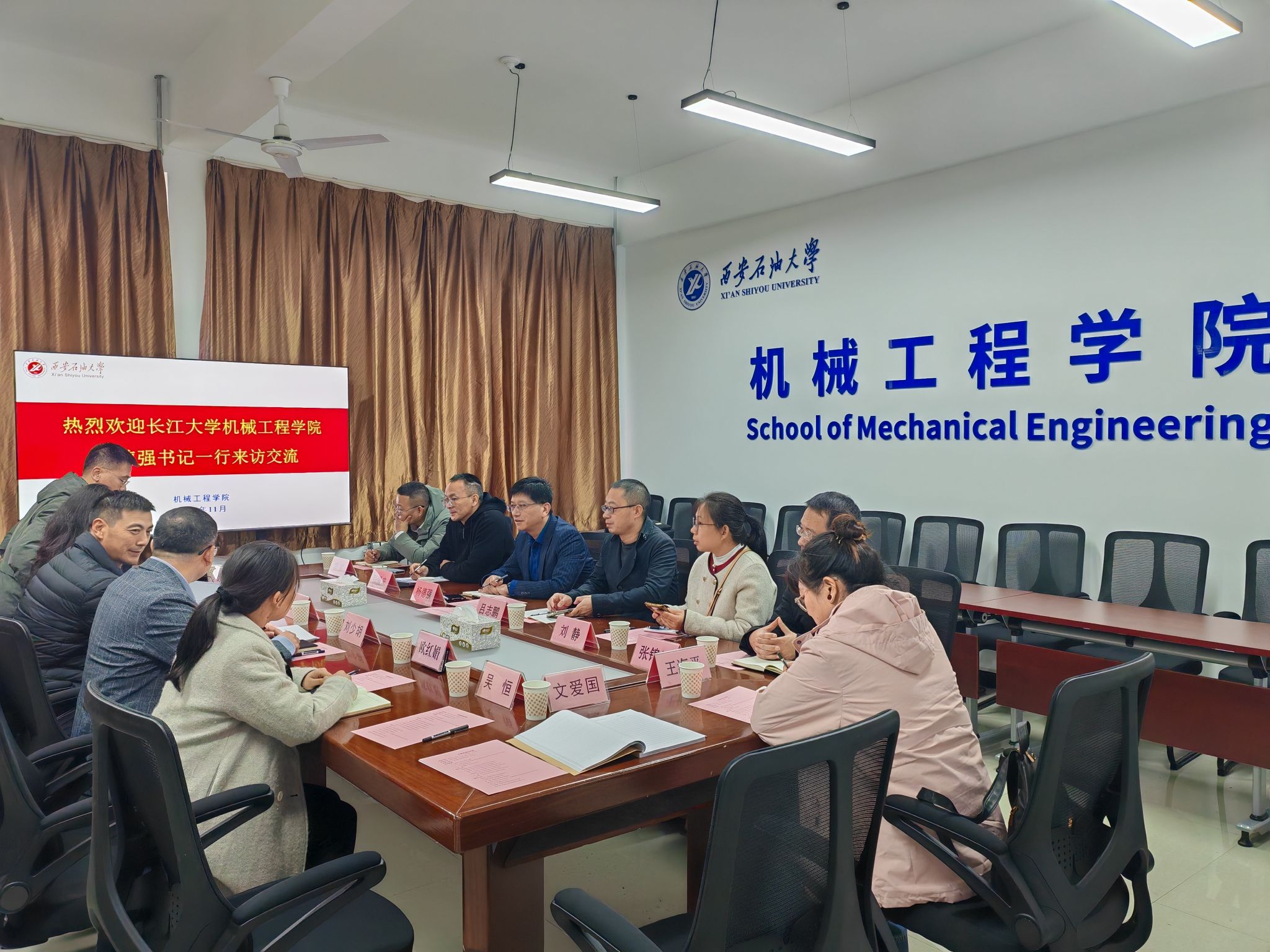 11月14日上午,長(zhǎng)江大學(xué)機(jī)械工程學(xué)院黨委書記楊德強(qiáng)一行七人來訪我校機(jī)械工程學(xué)院,圍繞學(xué)科建設(shè)與工程教育專業(yè)認(rèn)證等議題開展深度交流座談,共商內(nèi)涵式發(fā)展大計(jì)。座談會(huì)由機(jī)械工程學(xué)院院長(zhǎng)劉少胡主持,學(xué)院班子成員、專業(yè)負(fù)責(zé)人、實(shí)驗(yàn)中心主任和相關(guān)管理人員參會(huì)。