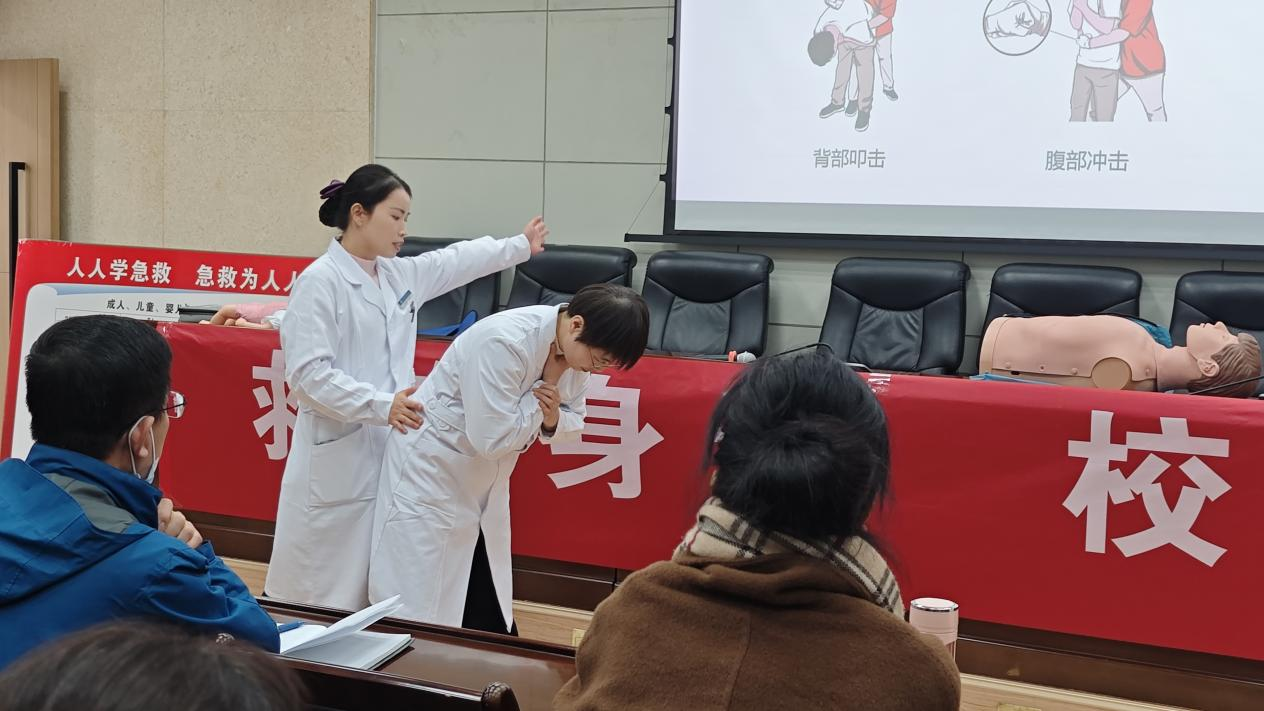 本次培訓(xùn)由校醫(yī)院伍曉燕主任領(lǐng)銜的專業(yè)急救師資團(tuán)隊(duì)全程授課,創(chuàng)新采用“理論講解+實(shí)操演練”的沉浸式教學(xué)模式。理論講解環(huán)節(jié),譚亞講師結(jié)合真實(shí)急救案例,以生動(dòng)通俗的語(yǔ)言重點(diǎn)解讀心肺復(fù)蘇(CPR)核心要點(diǎn),詳細(xì)闡釋患者意識(shí)、呼吸、心跳的科學(xué)判斷方法,明確胸外按壓的部位、深度、頻率標(biāo)準(zhǔn)及人工通氣的操作要領(lǐng);同時(shí)系統(tǒng)介紹AED(自動(dòng)體外除顫器)的工作原理、在心臟驟停搶救中的關(guān)鍵作用,提煉“聽(tīng)它說(shuō),跟它做”的實(shí)操原則,并針對(duì)成人、兒童及嬰幼兒不同人群的生理特點(diǎn),分層講解海姆立克急救法的操作步驟、科學(xué)原理及安全注意事項(xiàng),為實(shí)操演練筑牢堅(jiān)實(shí)理論基礎(chǔ)。