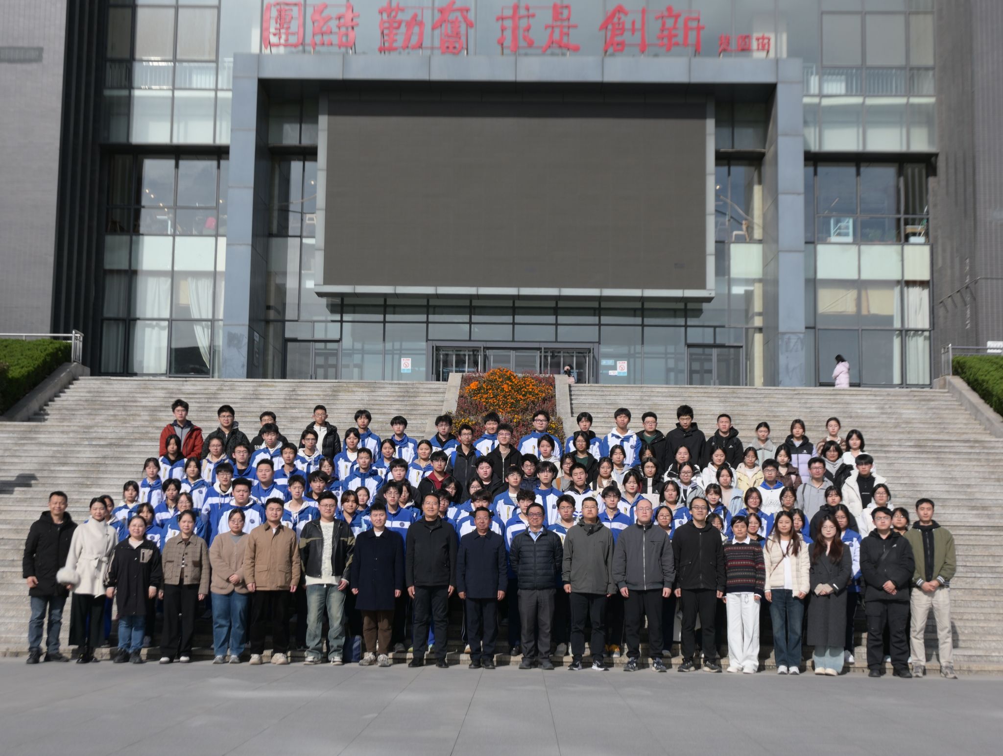 2025年11月19日下午,西安高新區(qū)第五高級中學(以下簡稱五高)受邀來我校開展研學活動,校長劉占權帶領師生代表100余人參加活動。理學院招生宣傳工作組代表學校接待五高師生并在鄠邑校區(qū)第一會議室舉行簡短的歡迎儀式。理學院黨委書記席利哲、副院長馬儇龍、理學院教授兼五高科技副校長郭文閣及理學院教師代表參加歡迎儀式。歡迎儀式開始前,與會人員在圖書館南門臺階前合影留念。歡迎儀式上,席利哲代表學校及理學院對五高師生代表的到來表示熱烈歡迎,并簡要介紹了研學活動行程和學校概況。