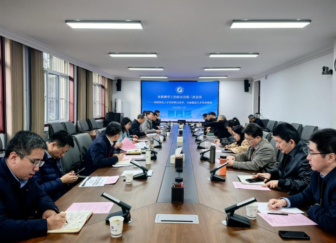 為深入貫徹學校第三次黨代會精神和教育科技人才一體化改革部署,高質(zhì)量謀劃本科教學“十五五”新一輪發(fā)展,2025年11月21日上午,學校在鄠邑校區(qū)辦公樓第三會議室召開本科教學工作研討會第三次會議。會議圍繞“持續(xù)深化人才培養(yǎng)模式改革,全面提高人才培養(yǎng)質(zhì)量”主題,凝聚改革共識、明確工作路徑,為學校實現(xiàn)“十五五”期間目標筑牢育人根基。副校長張君濤出席會議,各院系主要負責人,教務(wù)處、實驗室管理處(實驗中心)、高教研究與評估督導中心相關(guān)負責人參加會議。會議由教務(wù)處處長張益主持。
