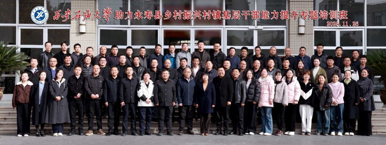 11月26日下午,西安石油大學(xué)助力永壽縣鄉(xiāng)村振興村鎮(zhèn)基層干部能力提升專題培訓(xùn)班在我校明德校區(qū)順利開班,永壽縣農(nóng)業(yè)農(nóng)村局副局長郝娜娜、我校校工會主席吳民生出席開班儀式,來自永壽縣各鎮(zhèn)村干部50余人參加培訓(xùn)。
