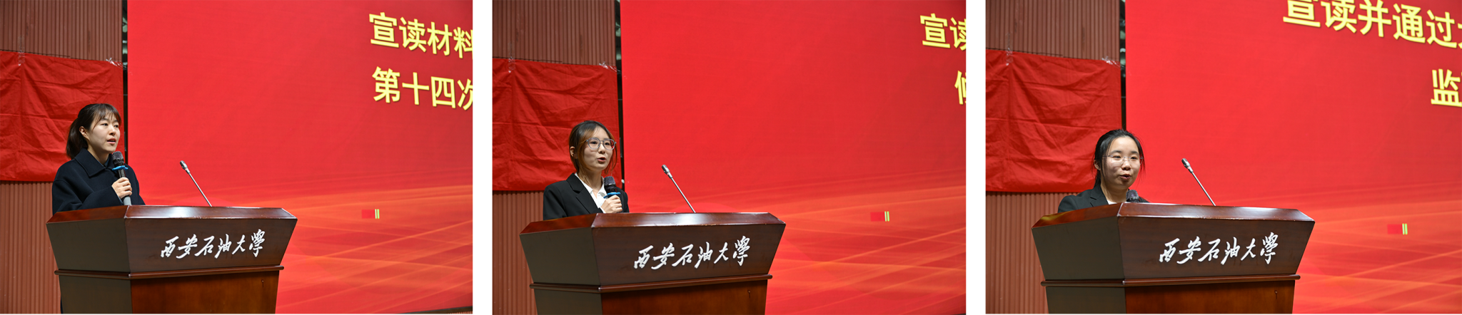 2024級(jí)團(tuán)總支書記馬黎宣讀《材料科學(xué)與工程學(xué)院第十四次學(xué)生代表大會(huì)選舉辦法》,第十三屆團(tuán)委副書記祁戰(zhàn)梅宣讀《材料科學(xué)與工程學(xué)院第十四次學(xué)生代表大會(huì)學(xué)生會(huì)委員會(huì)候選委員名單》,第十三屆團(tuán)委副書記權(quán)禾萌宣讀《大會(huì)總監(jiān)票人、總計(jì)票人、監(jiān)票人、計(jì)票人名單》并提交大會(huì)審議。