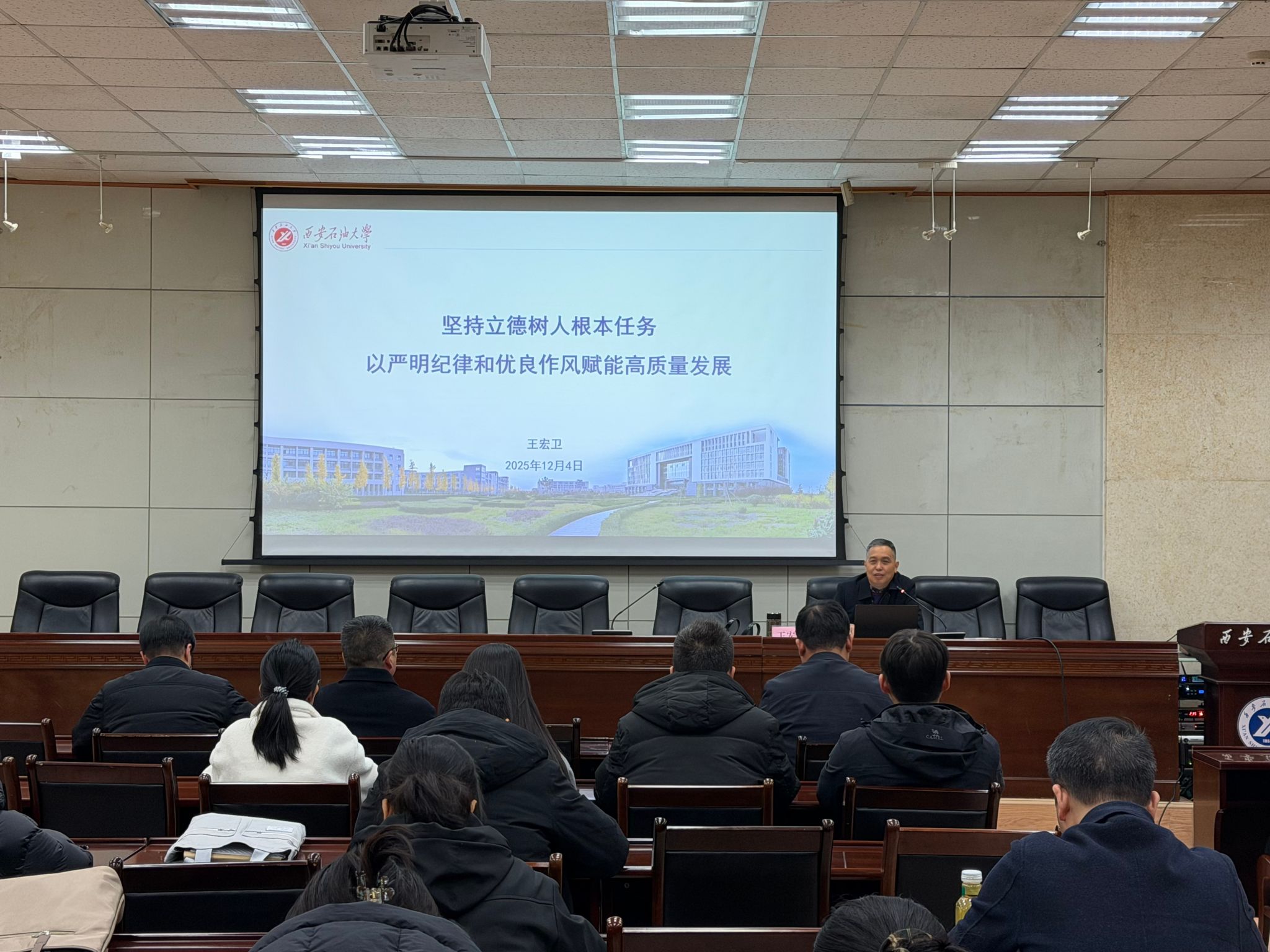 12月4日下午,管道工程學院黨委在雁塔校區(qū)西階第三會議室開展了“學黨章鑄忠誠,悟思想強使命”專題學習班第二講。本次課程由校紀委副書記王宏衛(wèi)講授,主題為“堅持立德樹人根本任務(wù),以嚴明紀律和優(yōu)良作風賦能高質(zhì)量發(fā)展”,學院全體教職工、研究生黨員代表共70余人參加學習。會議由學院黨委副書記高亮主持。