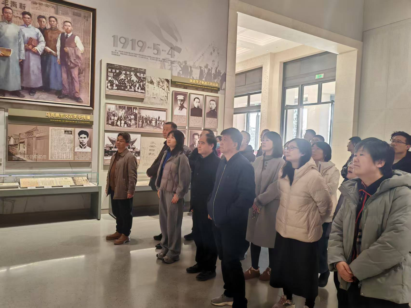 關(guān)中革命紀(jì)念館系統(tǒng)呈現(xiàn)了關(guān)中地區(qū)人民群眾在中國共產(chǎn)黨的領(lǐng)導(dǎo)下英勇革命的偉大歷程,集中展現(xiàn)了習(xí)仲勛同志光輝革命生涯和崇高風(fēng)范,反映了新時(shí)代以來三秦大地廣大干部群眾奮力譜寫中國式現(xiàn)代化建設(shè)陜西新篇章的生動(dòng)實(shí)踐。在講解員的引領(lǐng)下,大家有序步入紀(jì)念館展廳。一幅幅珍貴的歷史圖片、一件件斑駁的實(shí)物展品、一份份詳實(shí)的文獻(xiàn)資料,生動(dòng)再現(xiàn)了關(guān)中地區(qū)波瀾壯闊的革命歷程,深情講述了革命先輩們在極端艱苦的條件下,為了民族獨(dú)立和人民解放,拋頭顱、灑熱血的英勇事跡和崇高精神。同志們駐足凝視,心懷敬佩,深刻感受著那段烽火歲月里共產(chǎn)黨人堅(jiān)定的理想信念、頑強(qiáng)的斗爭意志和無私的奉獻(xiàn)精神。通過沉浸式的參觀學(xué)習(xí),大家對關(guān)中地區(qū)的革命歷史有了更系統(tǒng)、更直觀的了解,對中國共產(chǎn)黨人的初心使命有了更深刻、更具體的感悟。