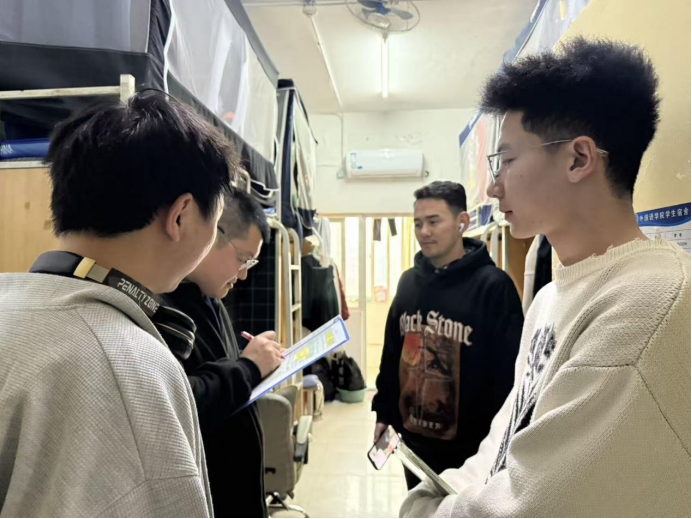 共建文明宿舍,營造安全小家。宿舍是學(xué)生生活的重要場所,也是安全管理重點(diǎn)區(qū)域。12月8日下午,輔導(dǎo)員對(duì)宿舍進(jìn)行了走訪和檢查,著重排查了違規(guī)電器、存放易燃易品等安全隱患,提醒學(xué)生要做到人走斷電、鎖好門窗,切實(shí)防火防盜等安全隱患,督促學(xué)生即查即改。通過排查,引導(dǎo)學(xué)生遵守管理規(guī)定,將安全教育融入日常,共創(chuàng)安全、溫馨居住環(huán)境。
