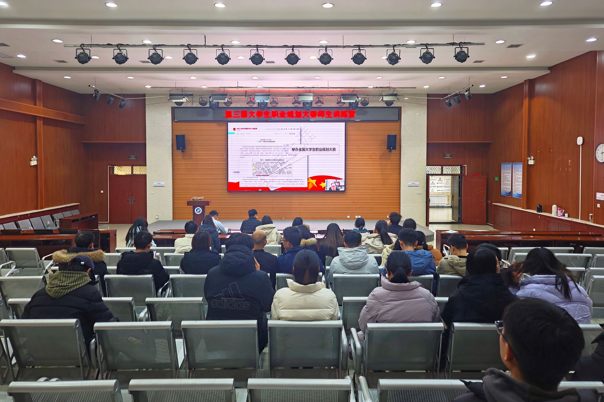 為進(jìn)一步提升輔導(dǎo)員職業(yè)規(guī)劃指導(dǎo)能力,強(qiáng)化我校職業(yè)規(guī)劃大賽建設(shè),助力校級(jí)決賽選手精準(zhǔn)優(yōu)化參賽作品、提升競(jìng)賽競(jìng)爭(zhēng)力,12月17日下午,我校在鄠邑校區(qū)崇文樓118報(bào)告廳成功第三屆大學(xué)生職業(yè)規(guī)劃大賽師生培訓(xùn)營(yíng),全體輔導(dǎo)員及第三屆職業(yè)規(guī)劃大賽校級(jí)決賽選手參加培訓(xùn)。