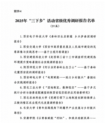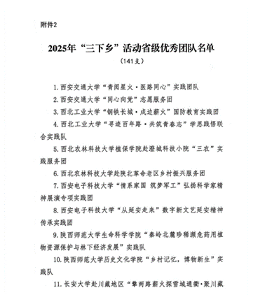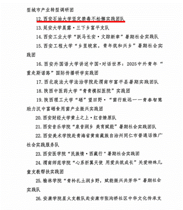近日,共青團(tuán)陜西省委、中共陜西省委教育工委在全省范圍內(nèi)組織開展的2025年陜西省大學(xué)生暑期文化科技衛(wèi)生“三下鄉(xiāng)”社會(huì)實(shí)踐活動(dòng)評選表彰結(jié)果揭曉,我校電子工程學(xué)院堅(jiān)定禁毒不松懈實(shí)踐團(tuán)隊(duì)被評為省級標(biāo)兵團(tuán)隊(duì),石油工程學(xué)院鐵人足跡探尋與文化賡續(xù)實(shí)踐團(tuán)、機(jī)械工程學(xué)院四載堅(jiān)守基層情懷,共筑退伍軍人新生路—西安石油大學(xué)連續(xù)4年開展基層退伍士兵調(diào)研與幫扶社會(huì)實(shí)踐活動(dòng)團(tuán)被評為省級優(yōu)秀團(tuán)隊(duì),姜楠、王業(yè)林、付強(qiáng)被評為省級先進(jìn)個(gè)人,馬克思主義學(xué)院《童心向黨憶崢嶸薪火相傳愛國情暑假社會(huì)實(shí)踐團(tuán)不同階段學(xué)生群體的抗戰(zhàn)精神教育調(diào)研報(bào)告》被評為省級優(yōu)秀調(diào)研報(bào)告,并獲團(tuán)省委專項(xiàng)資助。