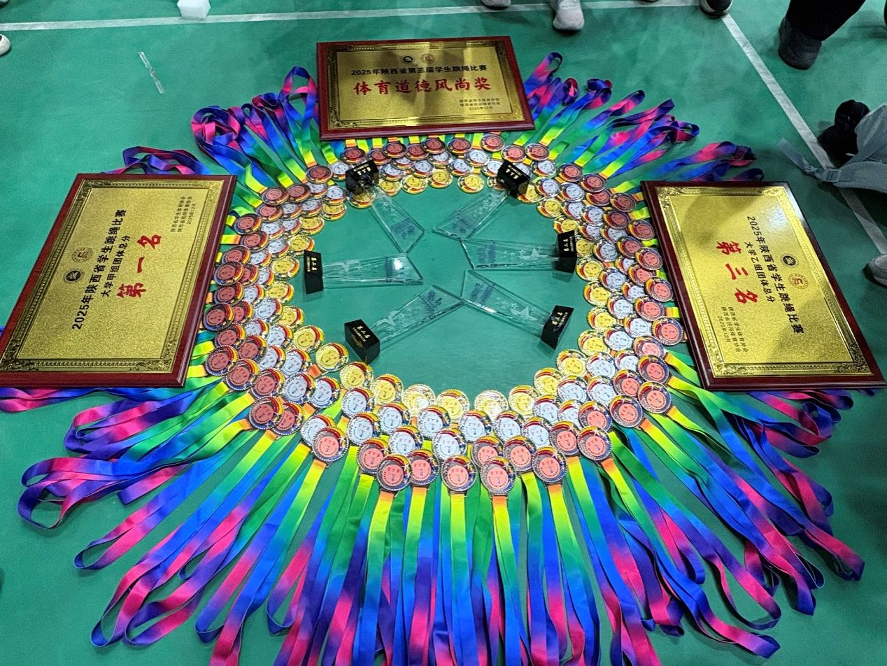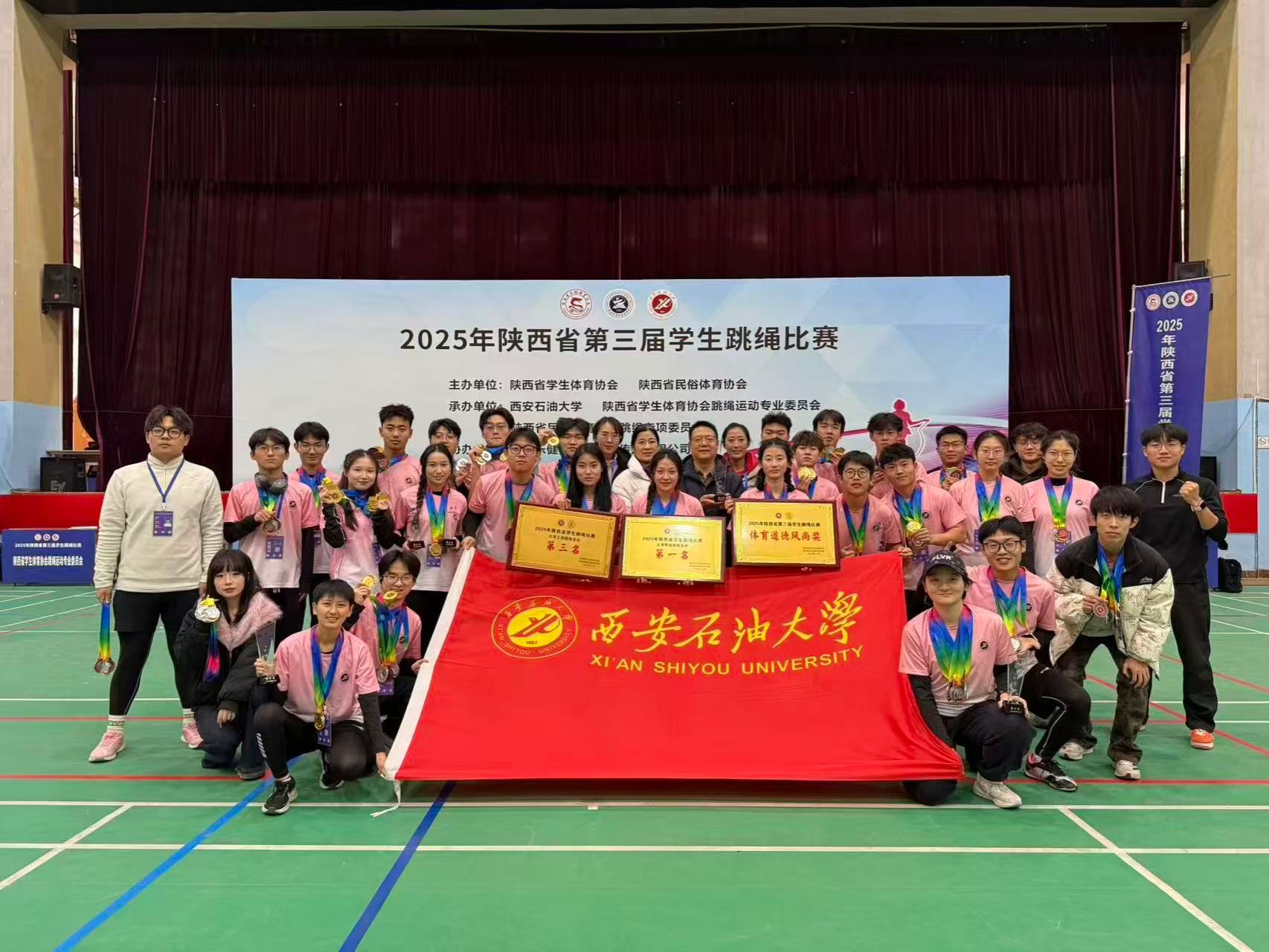 我校選派31名學(xué)生運動員參加。體育學(xué)院黨總支書記劉小波、院長李壽邦擔(dān)任領(lǐng)隊,徐小仙、董晨和原文惠擔(dān)任教練,主場作戰(zhàn)的跳繩隊展現(xiàn)出昂揚的斗志與精湛的技藝,在眾多參賽隊伍中脫穎而出,甲組4個項目取得金牌,10個項目取得銀牌,9個項目取得銅牌,最終榮獲甲組團體總分第一名;乙組5個項目取得金牌,3個項目取得銀牌,4個項目取得銅牌,最終榮獲團體總分第三名的優(yōu)異成績。徐小仙參加園丁組的30秒并腳跳和30秒交換跳均取得冠軍。同時,西安石油大學(xué)還被評為體育道德風(fēng)尚獎,為學(xué)校贏得了榮譽。