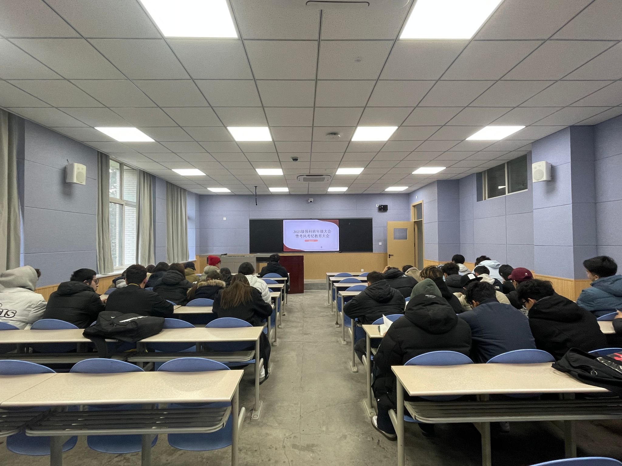 為營造公平誠信的考試環(huán)境,引導(dǎo)學(xué)生樹立正確的學(xué)業(yè)觀與榮譽觀,12月23日,人文學(xué)院在博覽樓A217教室召開2025級預(yù)科班年級大會暨考風(fēng)考紀(jì)教育大會。會議由預(yù)科班輔導(dǎo)員張馨元主講,預(yù)科班全體學(xué)生參加。