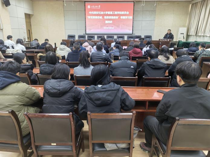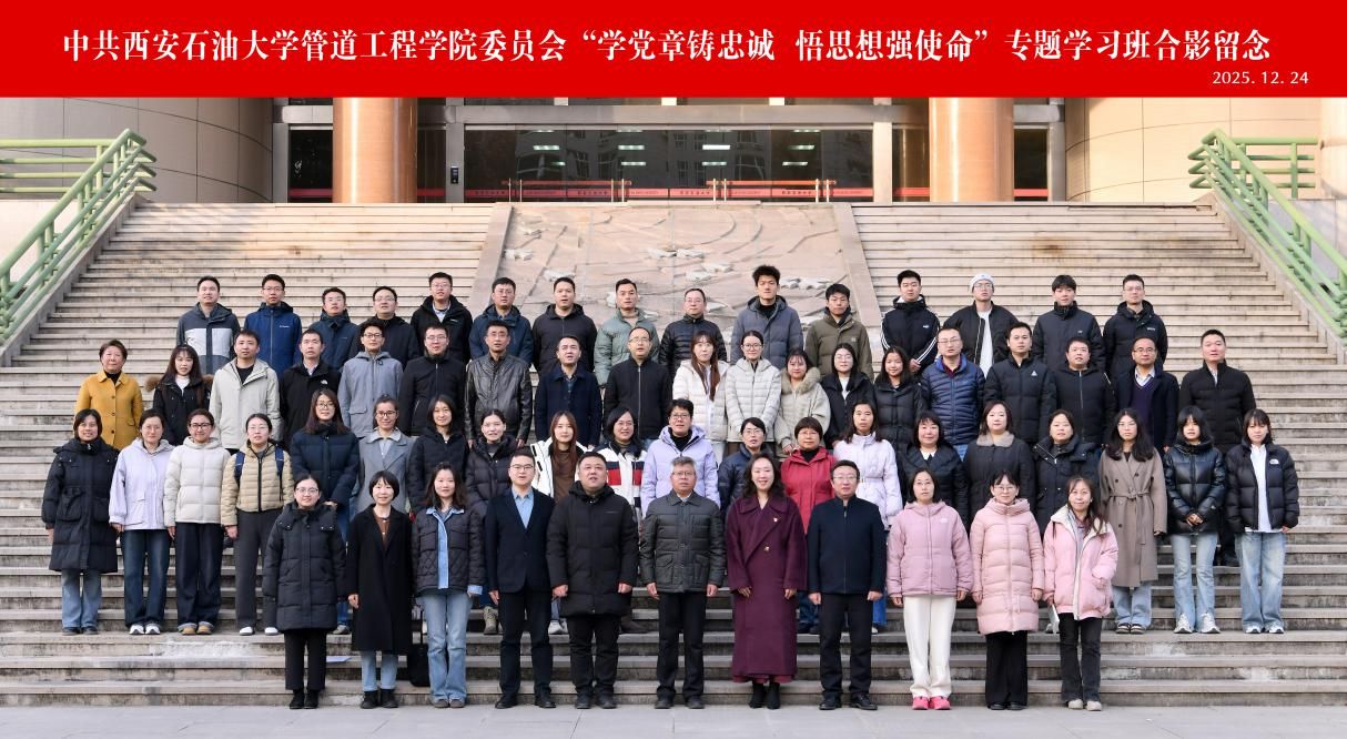 2025年12月24日下午,管道工程學院黨委在雁塔校區(qū)西階第三會議室開展“學黨章鑄忠誠,悟思想強使命”專題學習班第四講暨結(jié)業(yè)儀式。校黨委委員、副校長張驍勇出席并作第四講專題報告,學院班子全體成員、全體教工黨員、研究生黨員代表70人參加儀式。儀式由學院黨委副書記高亮主持。