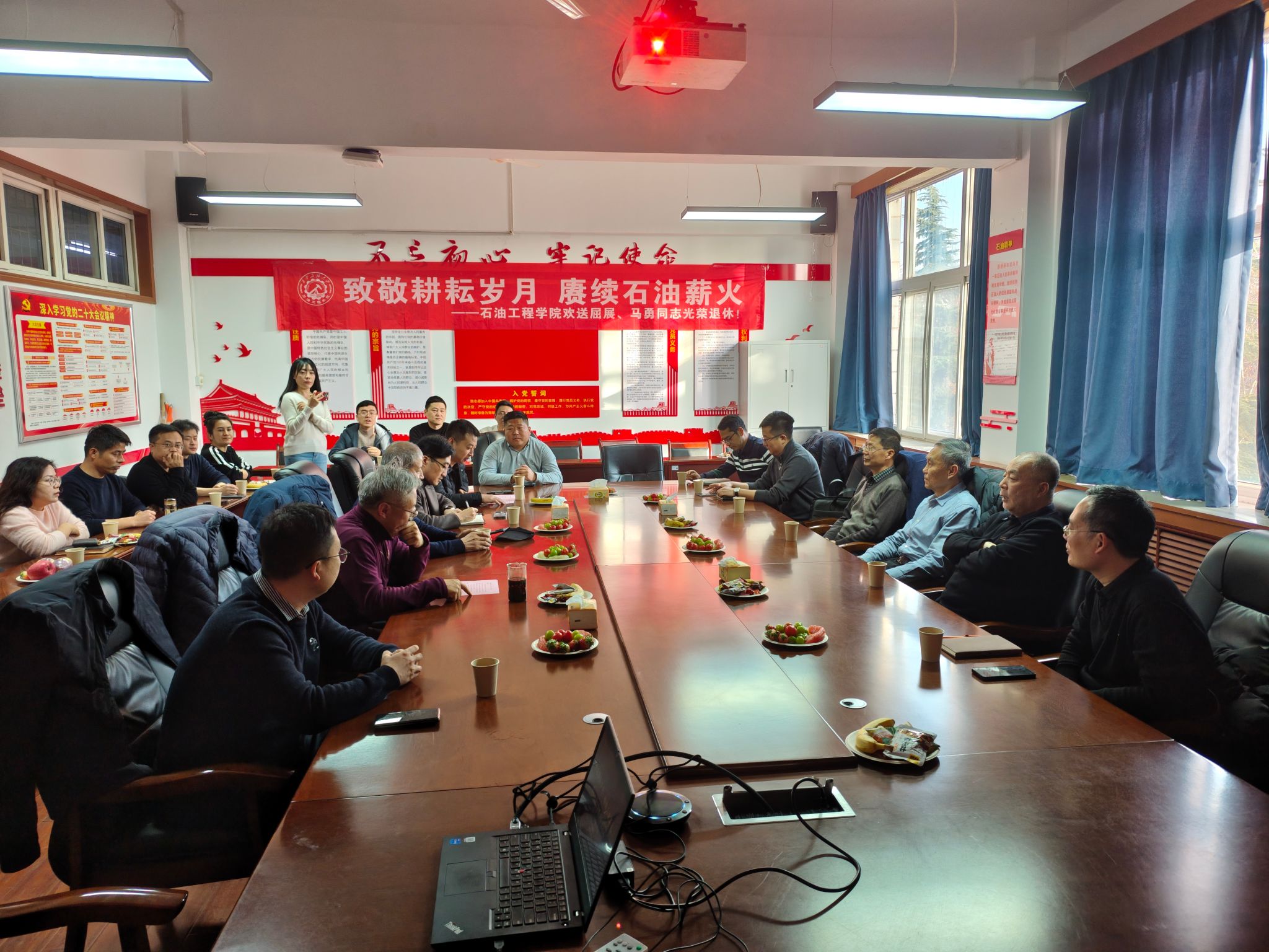 歲月如歌,薪火相傳。12月24日下午,石油工程學院于雁塔校區(qū)第一教學樓603會議室隆重舉行“致敬耕耘歲月,賡續(xù)石油薪火”主題榮休會,深情歡送屈展、馬勇兩位榮退教師。學院班子成員、退休教師代表、兩位老師往屆所帶學生和原任辦公室同事、學院教師代表齊聚一堂,共憶執(zhí)教歲月,共話師恩情誼,共送美好祝福。