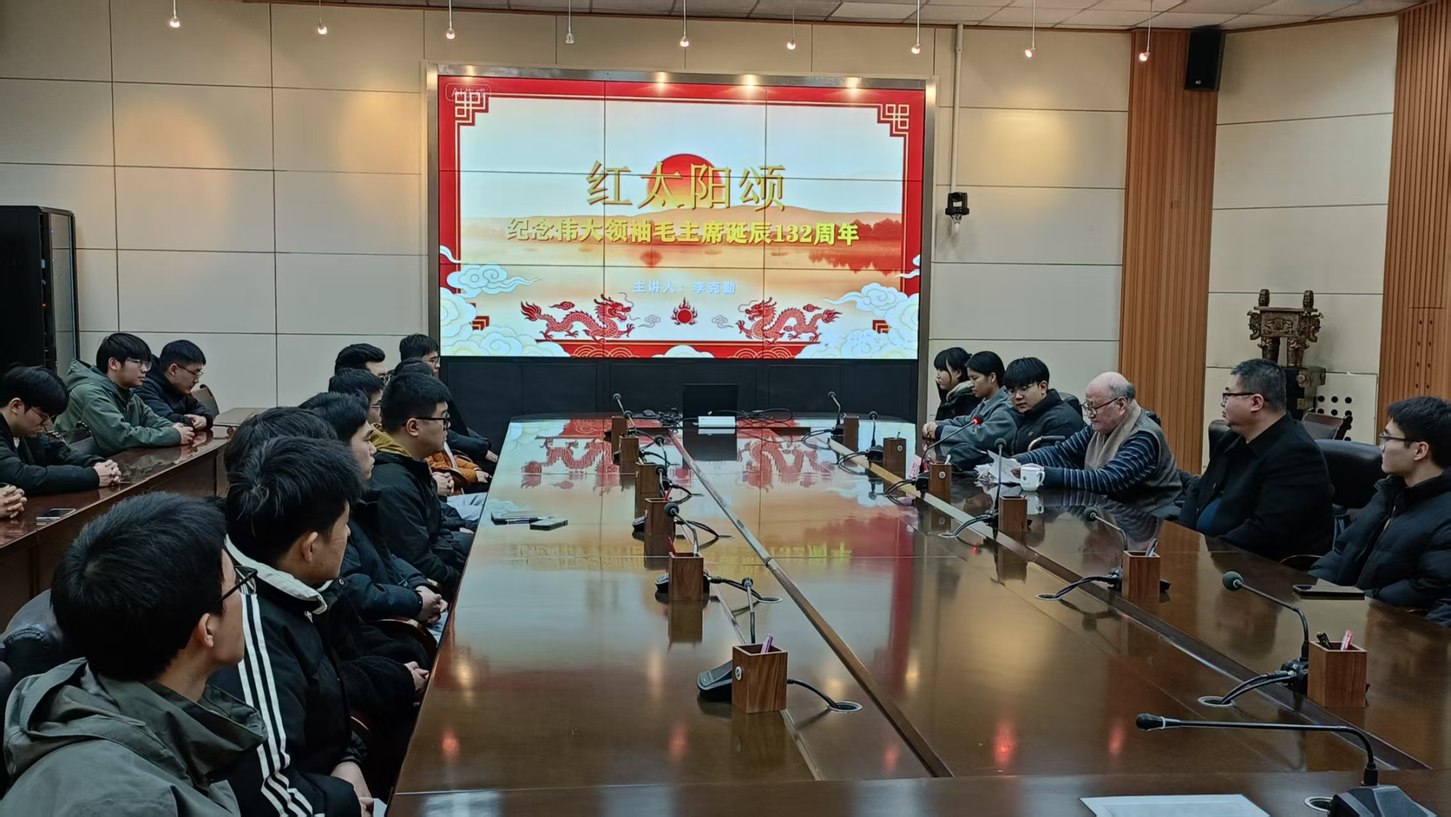 12月26日下午,在雁塔校區(qū)會議中心第二會議室,離退休教職工李克勤書記以“紅太陽頌”為主題,在紀(jì)念偉大領(lǐng)袖毛澤東主席誕辰132周年之際,為機(jī)械工程學(xué)院研究生代表奉獻(xiàn)了一場兼具思想性、指導(dǎo)性與趣味性的分享會,由離退休工作處副處長趙海濤主持。