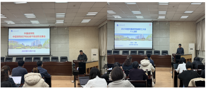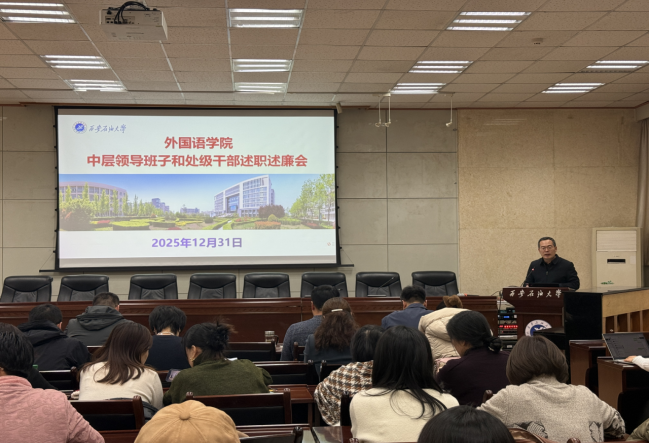 為全面檢驗年度工作成效,客觀精準評價中層領導班子履職效能與處級干部綜合表現,進一步凝聚發(fā)展共識、明晰奮進方向,12月31日下午,外國語學院在雁塔校區(qū)會議中心第三會議室召開中層領導班子及處級干部述職述廉會議,會議由學院黨委書記張建高主持。