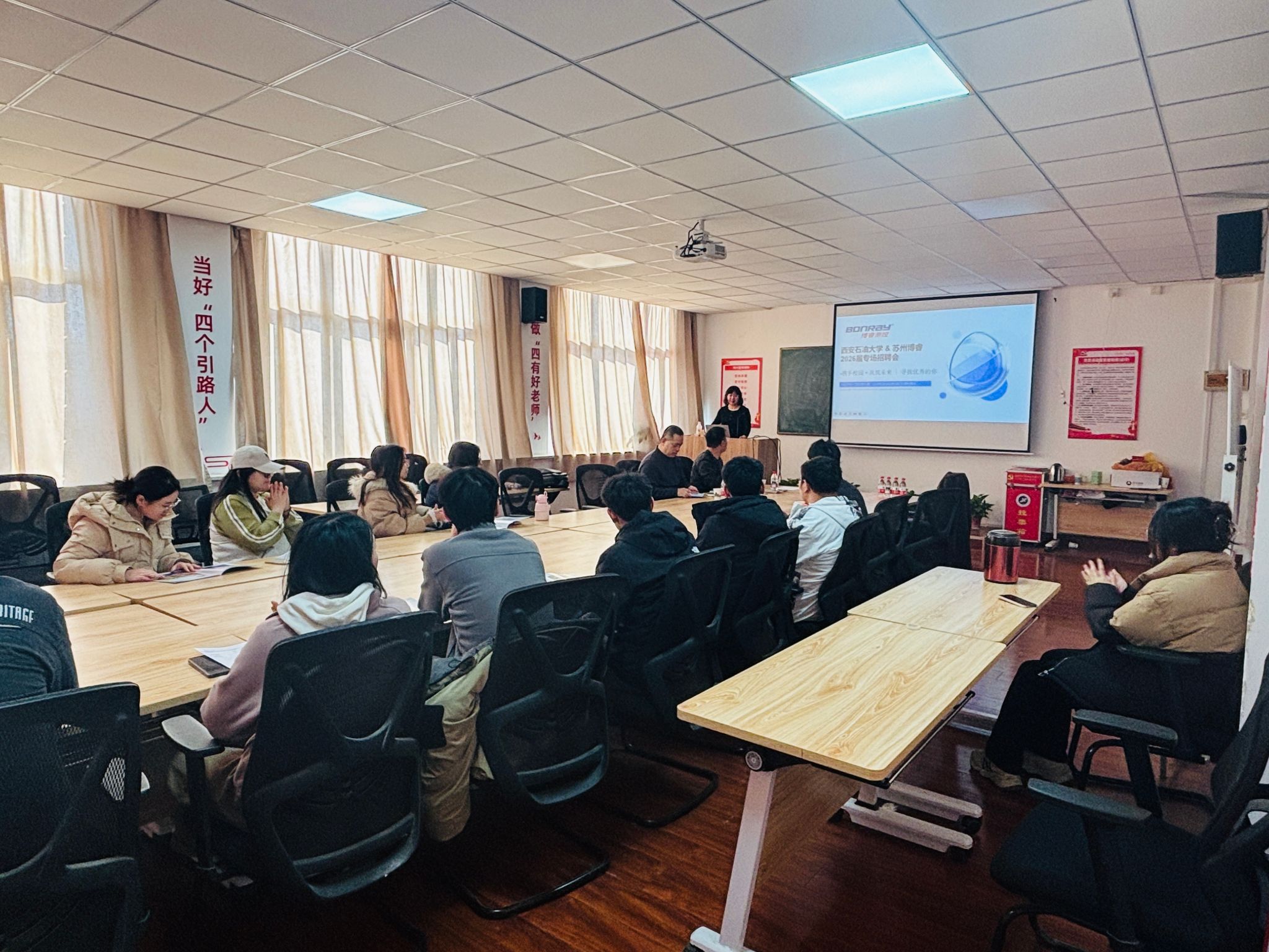 為充分發(fā)揮校友資源優(yōu)勢,搭建精準高效的就業(yè)橋梁,深化校企協(xié)同育人成效,1月9日下午,電子工程學院在雁塔校區(qū)華油能源樓905會議室成功舉辦蘇州博睿測控設備有限公司專場招聘會。