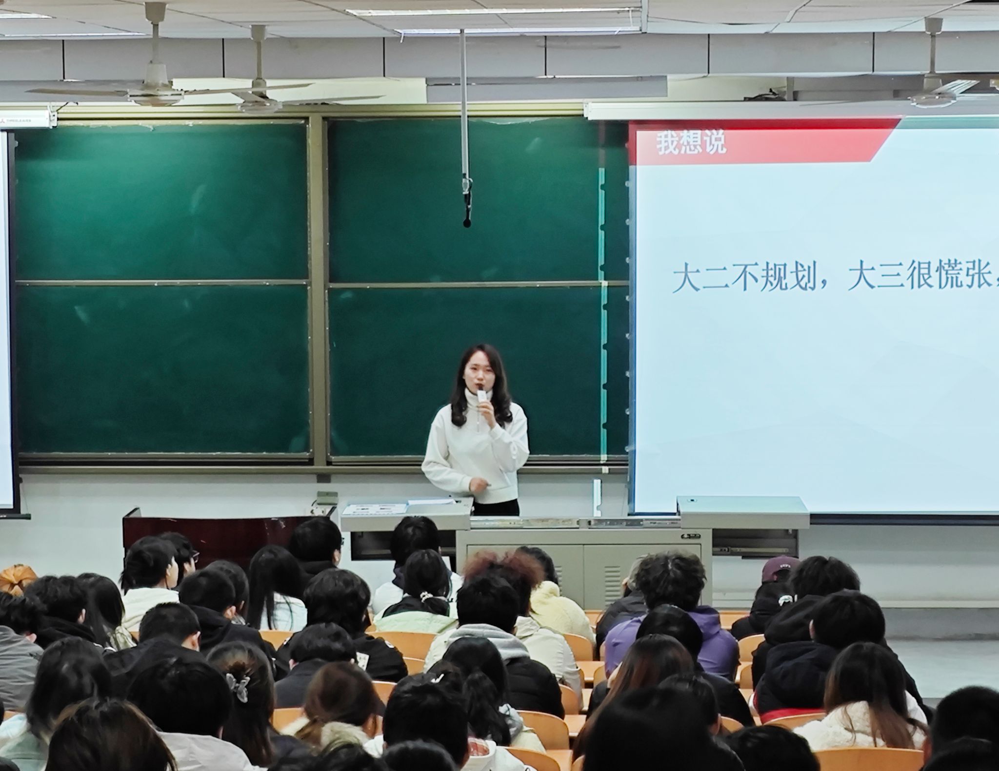 分享會內(nèi)容干貨滿滿,貼合學(xué)生實際。蔡乾鋒逐一解答了同學(xué)們關(guān)于學(xué)業(yè)規(guī)劃、四六級備考、專業(yè)分流、未來選擇的疑惑,鼓勵大家在大二這個關(guān)鍵期樹立目標、沉心治學(xué)、拒絕迷茫,以高效的規(guī)劃和扎實的努力,鋪就未來的成才之路。現(xiàn)場互動頻繁,氛圍熱烈。同學(xué)們認真聆聽,深受啟發(fā),紛紛表示對未來發(fā)展有了更清晰的認知和方向感。