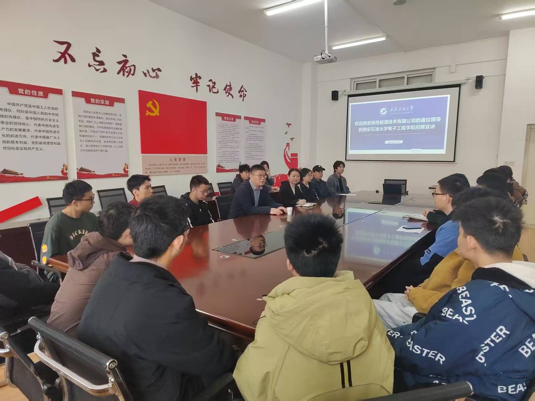 為進(jìn)一步加強(qiáng)校企合作,拓寬畢業(yè)生就業(yè)渠道,幫助學(xué)生深入了解石油行業(yè)前沿技術(shù)與發(fā)展趨勢(shì),3月12日上午,電子工程學(xué)院在鄠邑校區(qū)行知樓321室舉辦西安探岳能源技術(shù)有限公司專場(chǎng)招聘宣講會(huì)?;顒?dòng)特邀公司總經(jīng)理岳曉光擔(dān)任主講。學(xué)院黨委書記潘娜、畢業(yè)班輔導(dǎo)員錢宇航、張零及三十余名畢業(yè)生參加宣講會(huì)。