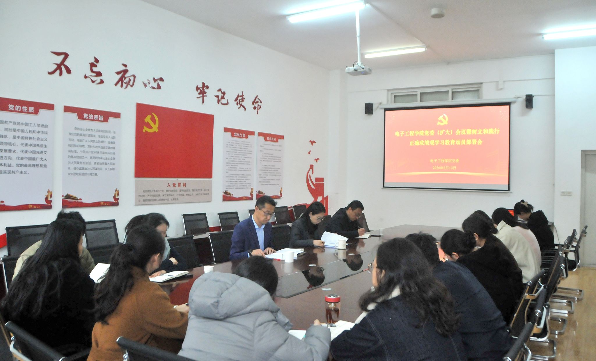 3月13日下午,電子工程學(xué)院在鄠邑校區(qū)行知樓321會(huì)議室召開黨委(擴(kuò)大)會(huì)議暨樹立和踐行正確政績(jī)觀學(xué)習(xí)教育動(dòng)員部署會(huì),認(rèn)真學(xué)習(xí)貫徹習(xí)近平總書記關(guān)于在全黨開展樹立和踐行正確政績(jī)觀學(xué)習(xí)教育的重要指示,傳達(dá)學(xué)習(xí)學(xué)校黨委相關(guān)會(huì)議精神,啟動(dòng)部署學(xué)院學(xué)習(xí)教育工作。學(xué)院黨委書記潘娜主持會(huì)議,學(xué)院黨委委員、各黨支部書記參加會(huì)議。