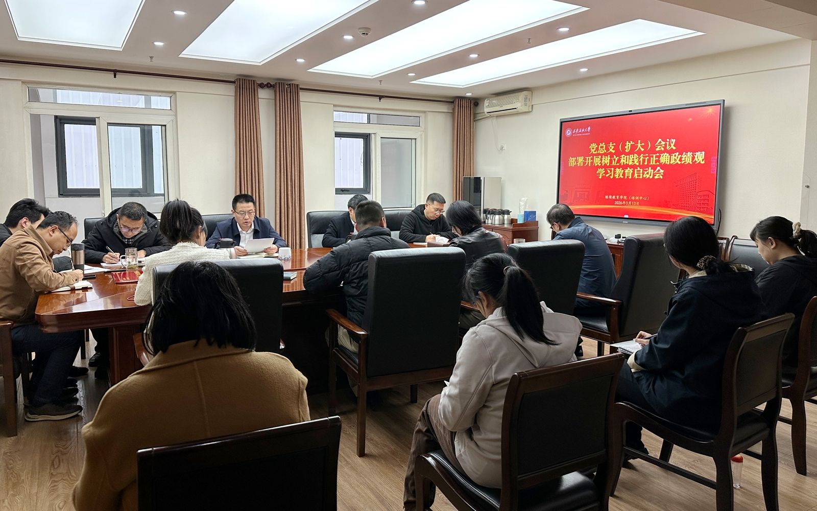 為深入學(xué)習(xí)貫徹習(xí)近平總書記關(guān)于樹立和踐行正確政績觀的重要論述,全面落實學(xué)校黨委工作部署,3月13日,繼續(xù)教育學(xué)院召開黨總支會議,對全院樹立和踐行正確政績觀學(xué)習(xí)教育進(jìn)行動員部署、壓實責(zé)任、明確要求。院長林紅先主持會議,學(xué)院全體黨員參加會議。