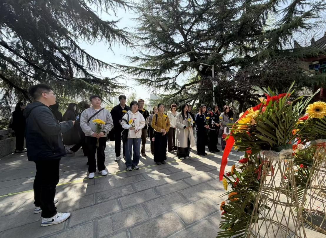 活動(dòng)伊始,全體師生在莊嚴(yán)肅穆的陵園內(nèi)肅立默哀,向革命先烈致以深切哀思。李嶠致緬懷詞,他指出,楊虎城將軍是偉大的愛(ài)國(guó)將領(lǐng)、民族英雄。銘記革命歷史、感悟先輩精神,是青年黨員堅(jiān)定理想信念、勇?lián)鷷r(shí)代使命的必然要求。致辭結(jié)束后,全體師生行鞠躬禮,并依次敬獻(xiàn)鮮花、瞻仰陵園,寄托對(duì)革命先烈的無(wú)限緬懷與崇高敬仰